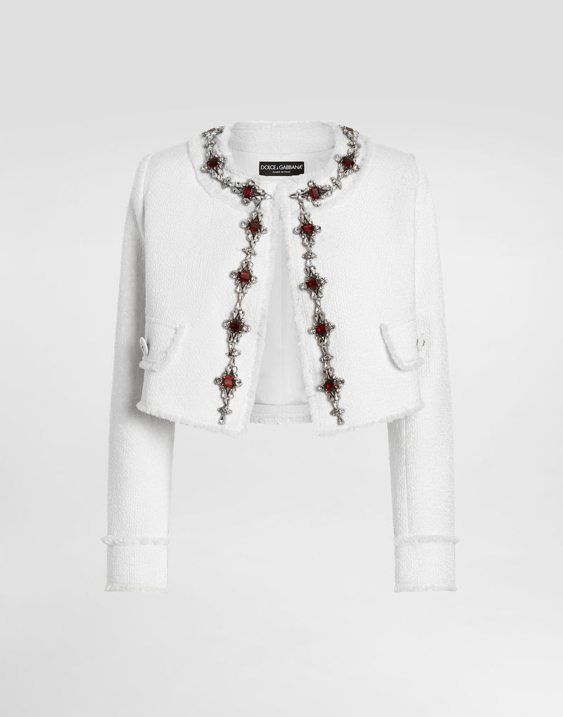 Short Tweed Jacket With Jewel Embroidery
