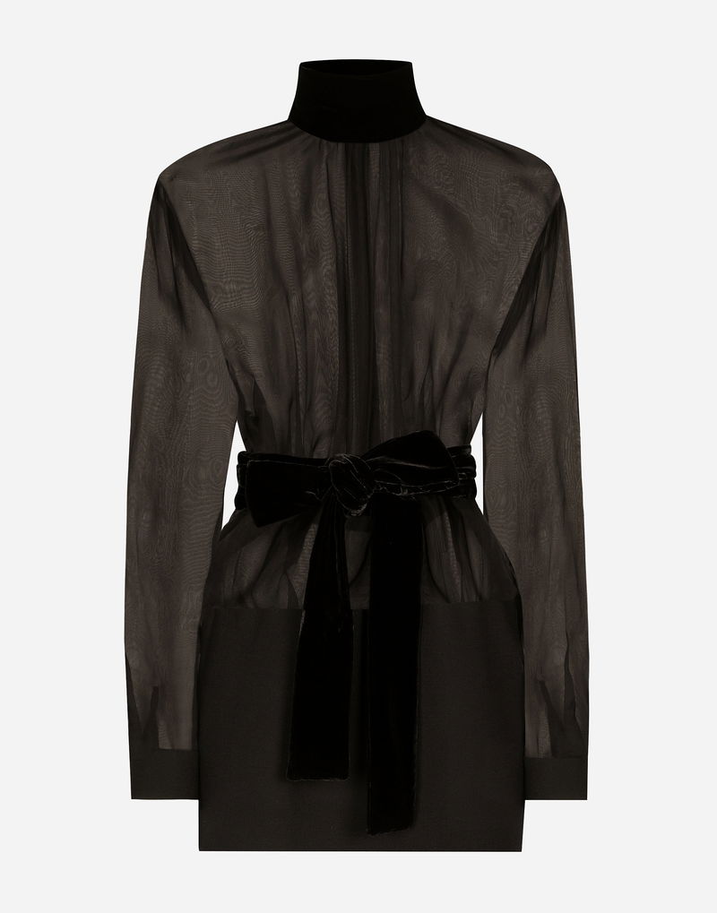 Short Wool Crepe And Organza Dress