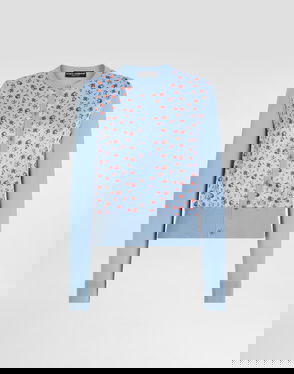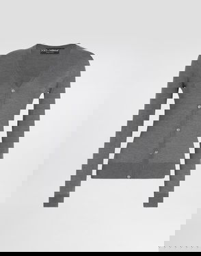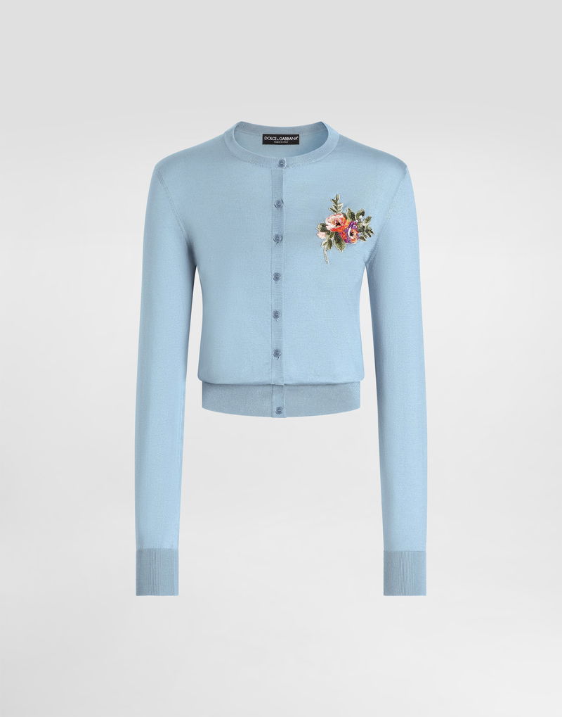 Silk cardigan with buttons: Blue Crew neck Long sleeves.