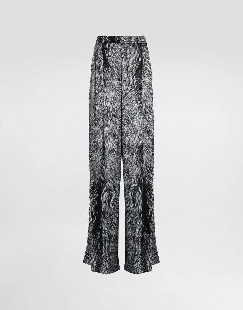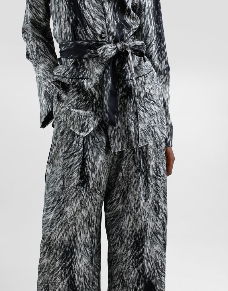 Silk Satin Pajama Pants With Fur Print