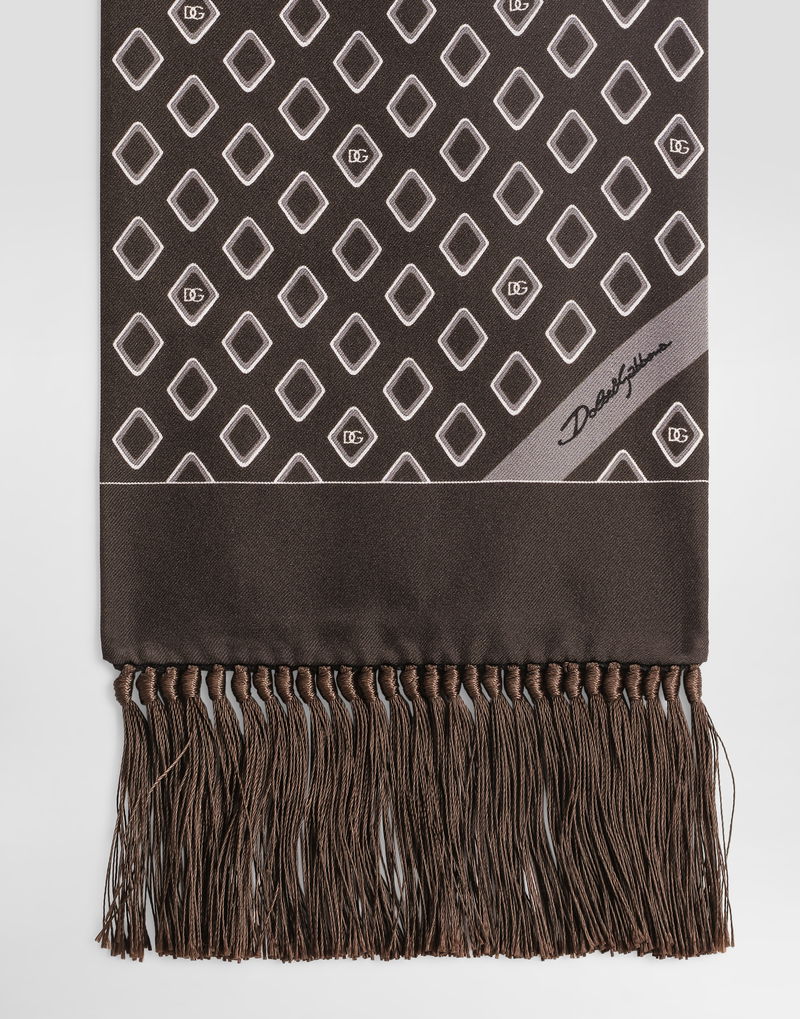 Silk Twill Scarf With Micro-design And Logo
