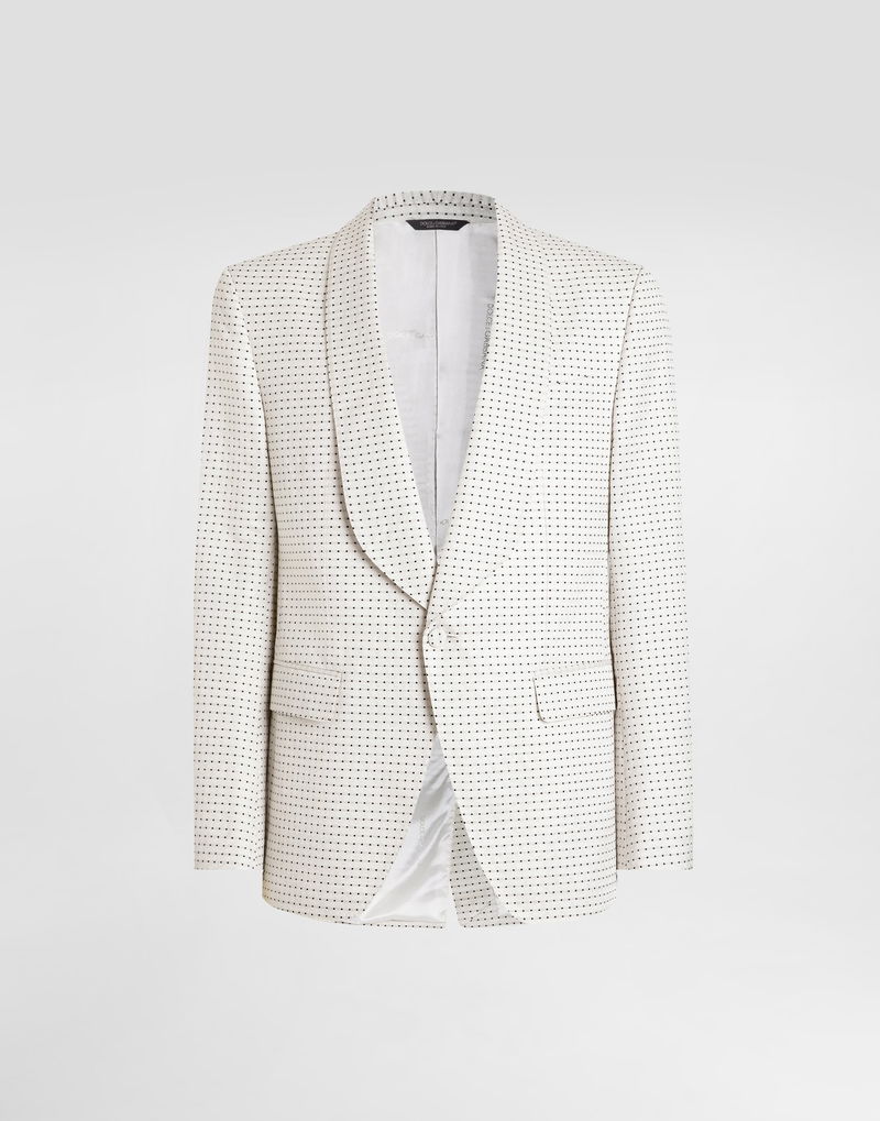 Single-breasted jacket in silk wool: Multi-colored Deconstructed Sicilia Light shape Rounded shawl lapels 1 button closure Fused and lined.