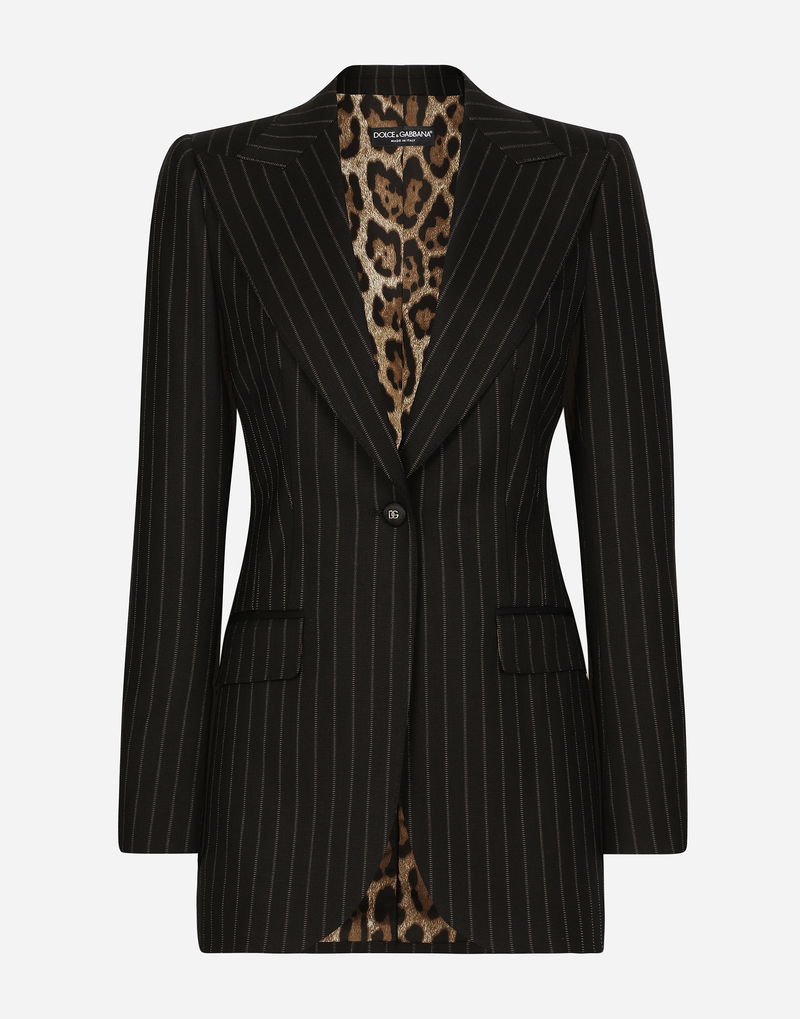 Single-breasted Pinstripe Wool Turlington Jacket