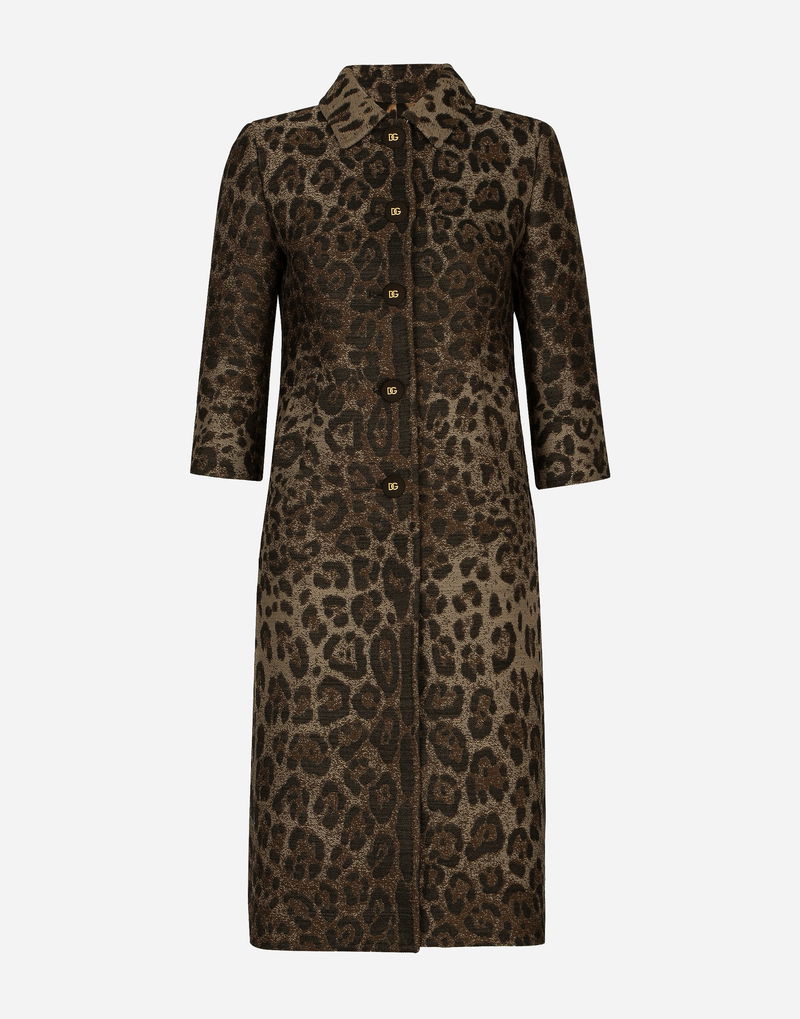 Single-breasted Wool Jacquard Coat With Leopard Design