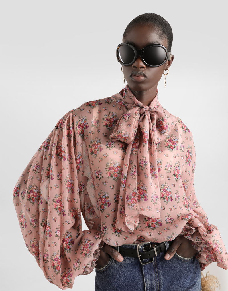 Small Flower Bouquets-print Chiffon Top