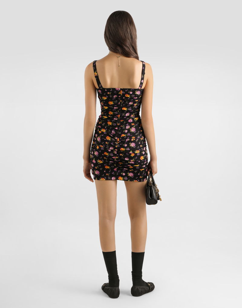 Small Rose Bouquets-print Draped Charmeuse Dress