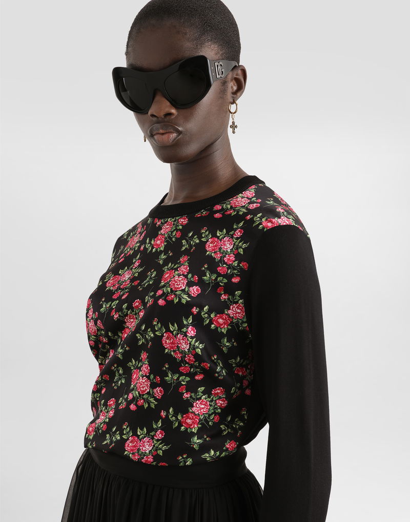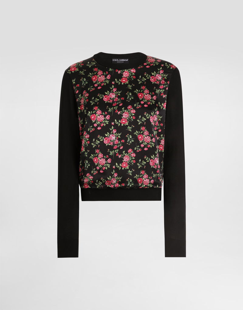 Small Rose Bouquets-print Silk And Satin Pullover