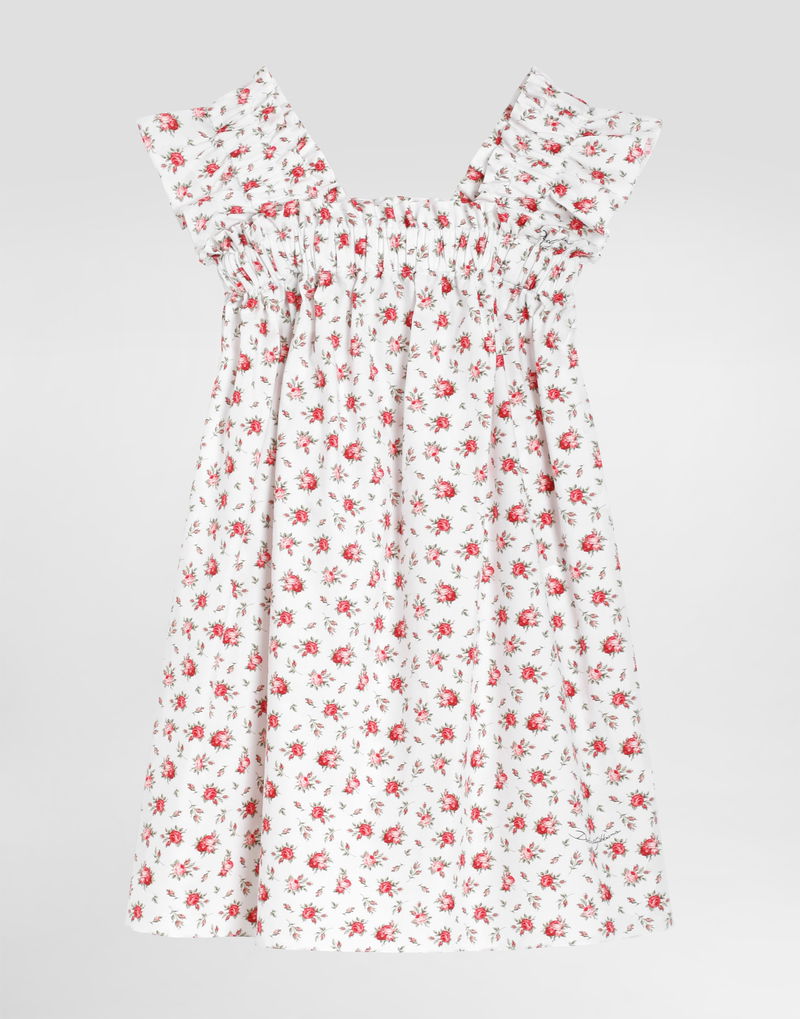Small rose-print poplin dress: Multi-colored Short sleeves Made in Italy The difference in the print placement that you may find on this product is a feature of Dolce & Gabbana’s “Handmade” pieces. A detail that makes every garment or accessory unique and exclusive..
