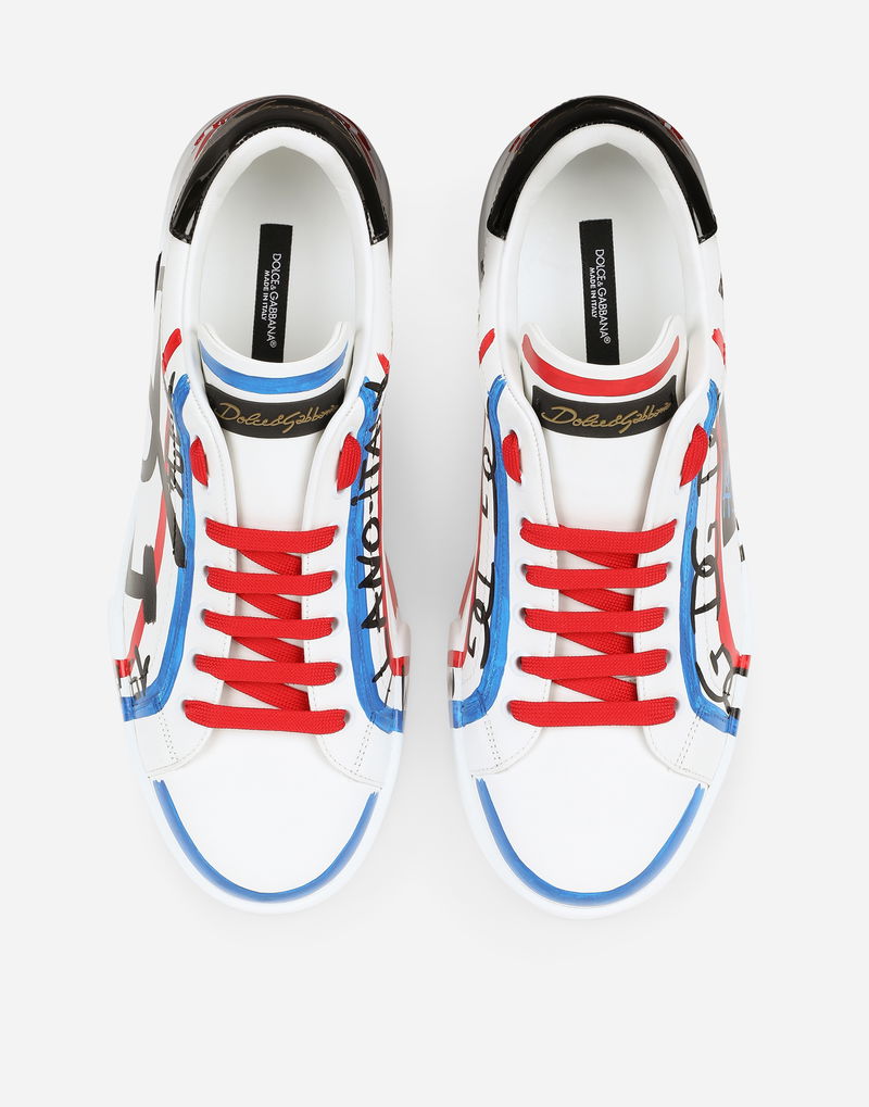 Portofino line sneakers in calfskin nappa with Dolce & Gabbana logo on the heel: Calfskin upper Flat laces Calfskin insole with logo on label Rubber sole with leather spoiler and micro-injection logo Branded sole.
