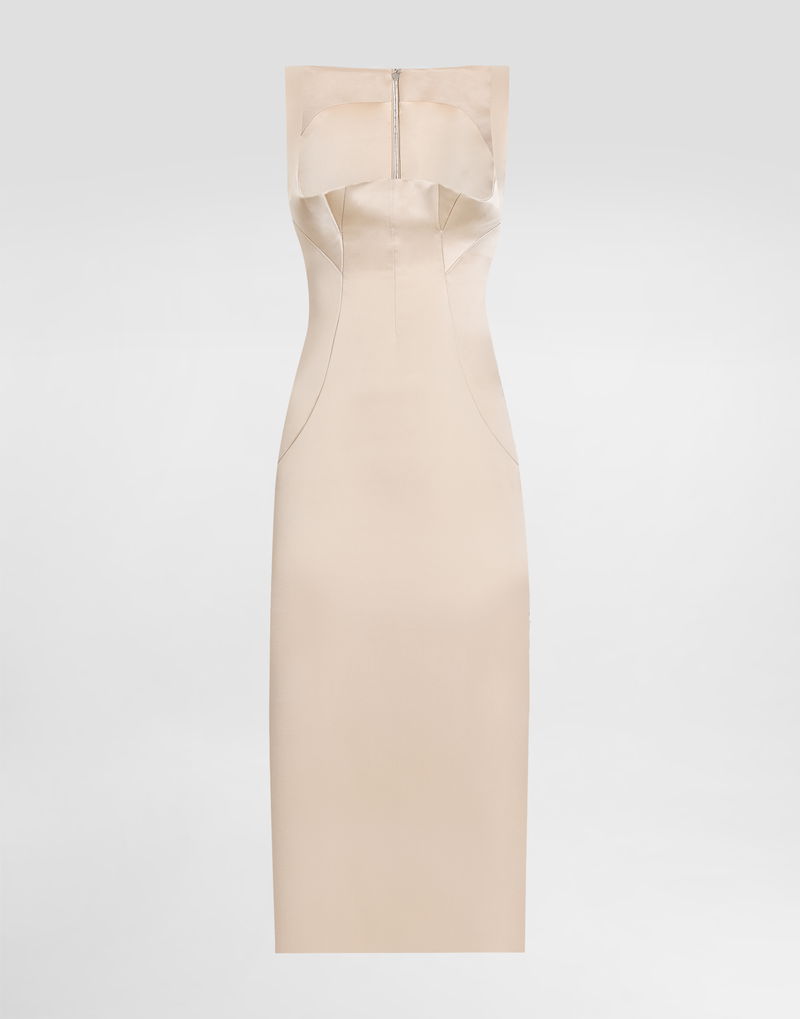 Stretch Satin Calf-length Sheath Dress