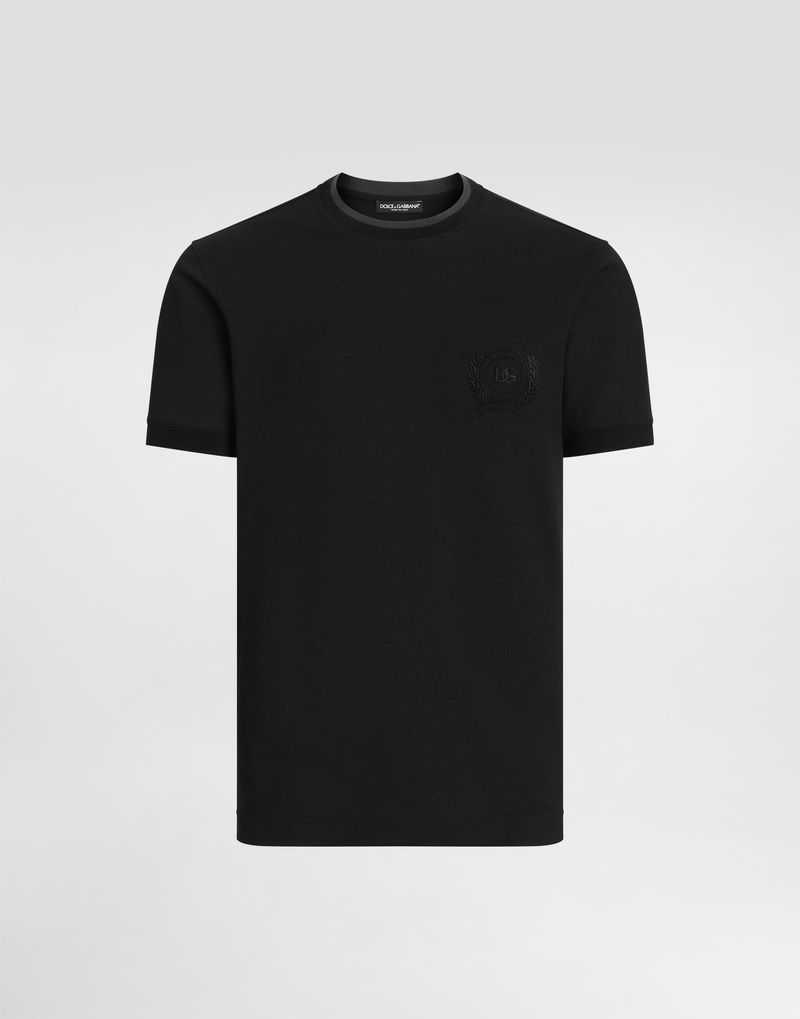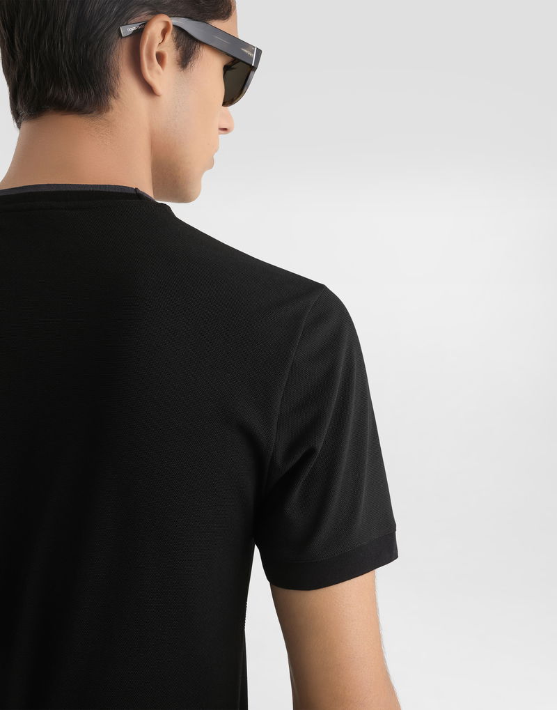 Technical piqué polo shirt with embroidery: Black Short sleeves Hem with slits The model is 185 cm tall and wears a size 48 IT Made in Italy