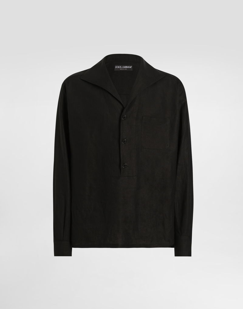 Three-button Long-sleeved Linen Shirt