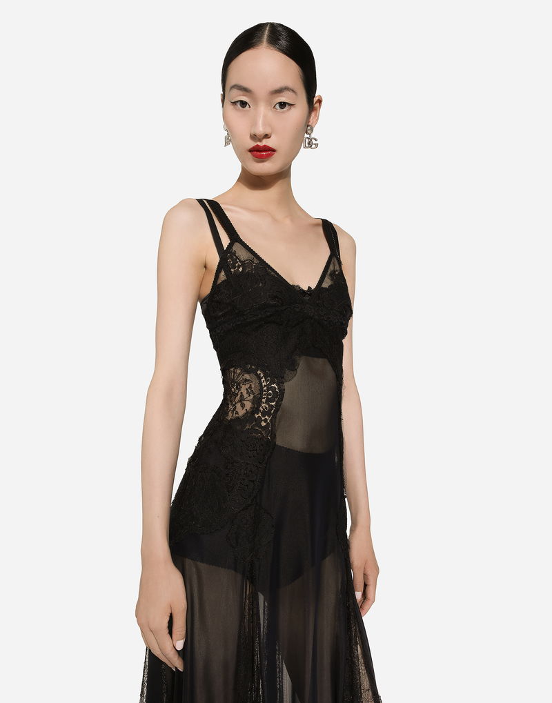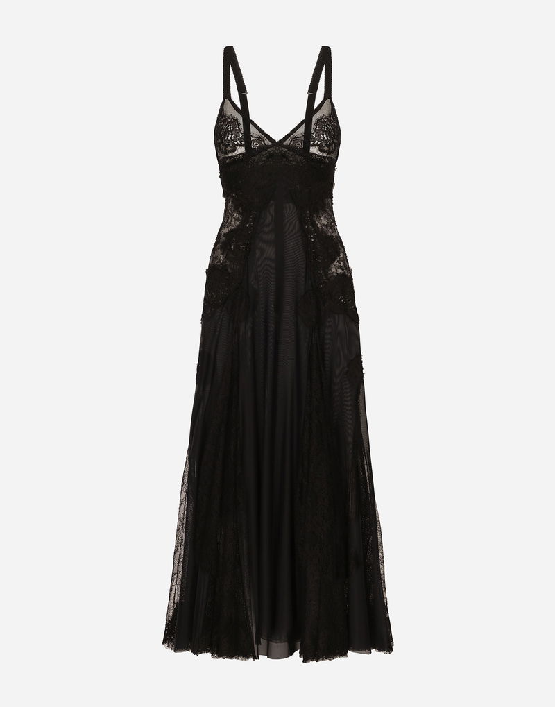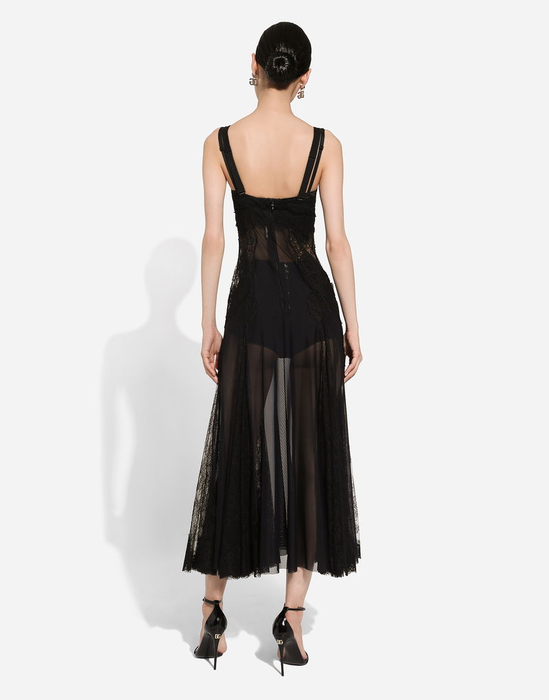 Tulle Midi Slip Dress With Lace Inserts