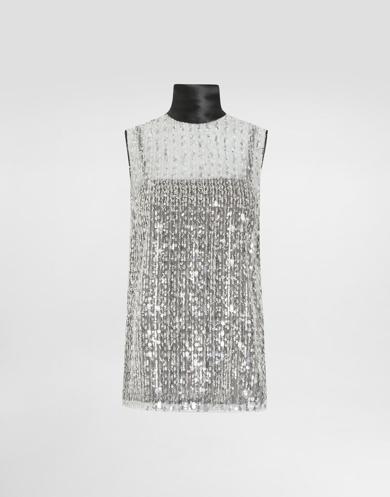 Tulle Turtle-neck Top With Sequin Embellishment