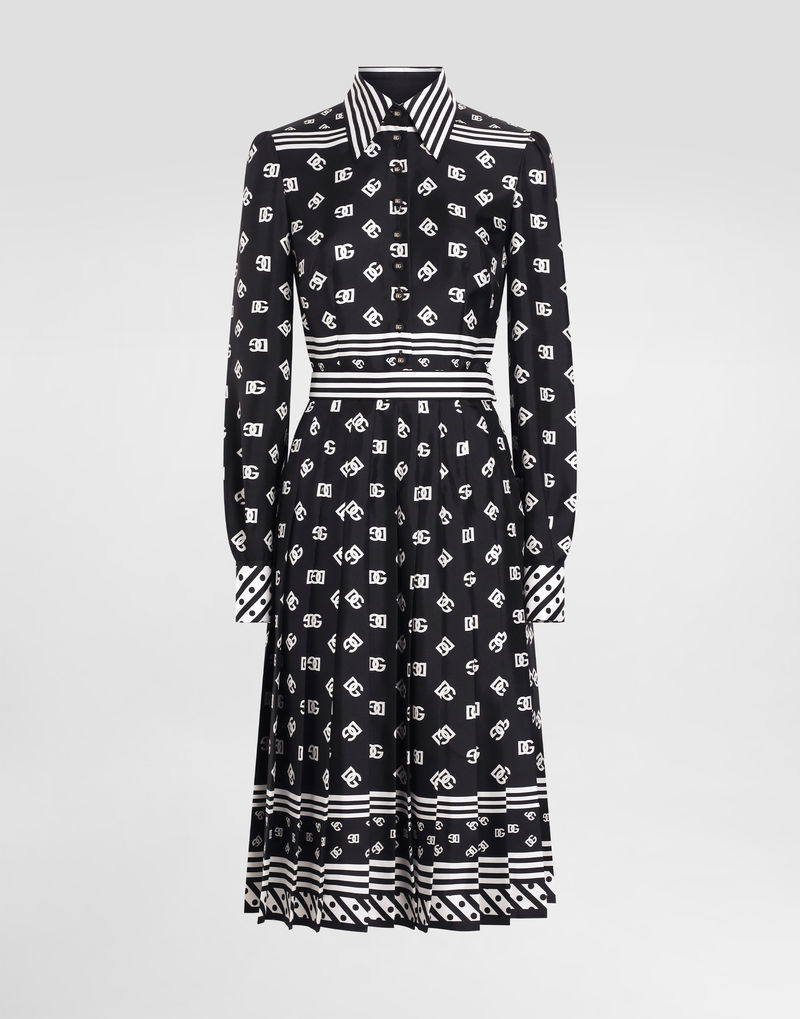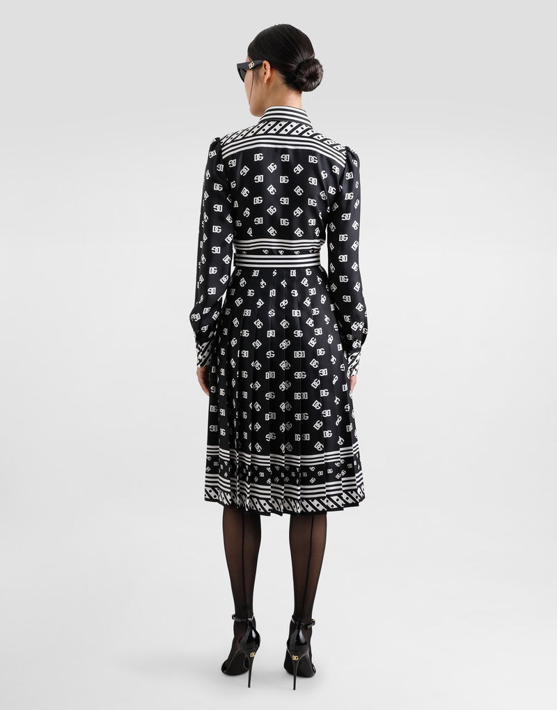 Twill Calf-length Shirt Dress With All-over DG Logo Scarf Print