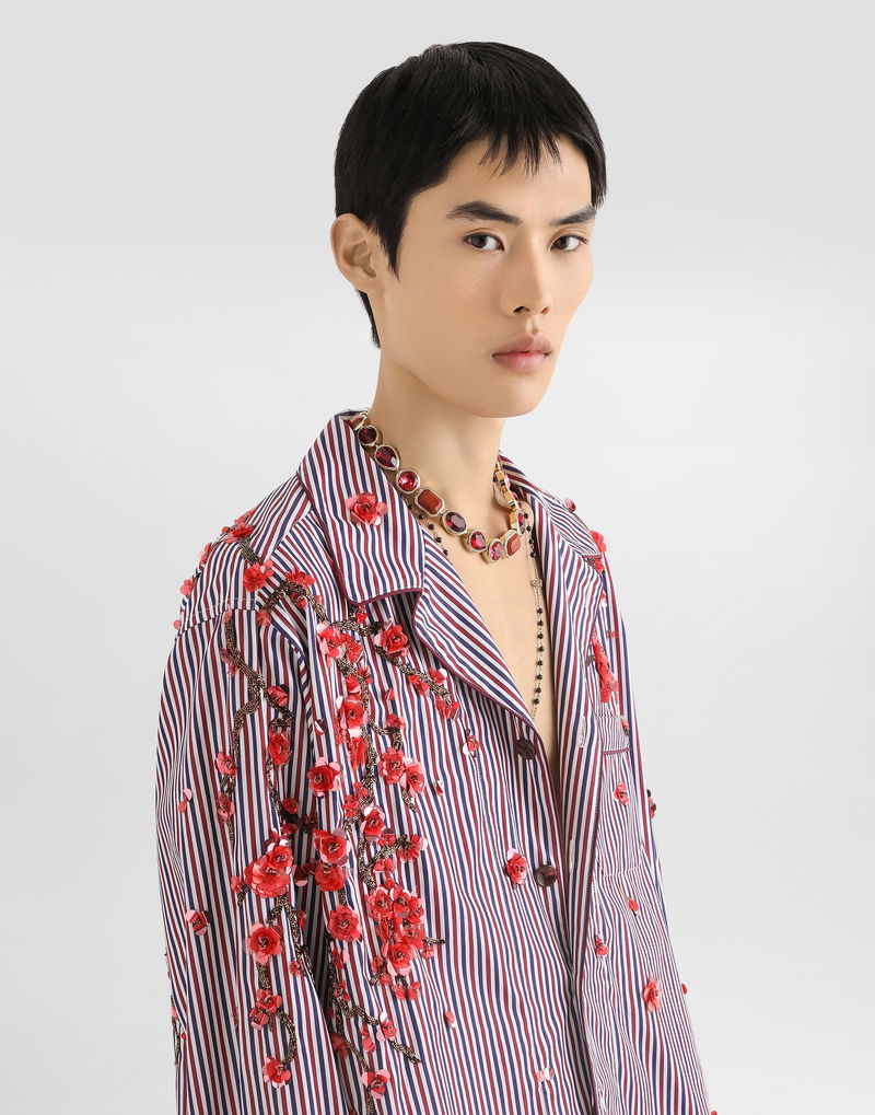 Vanity shirt with embroidery: Multi-colored Vanity collar Front pocket and piping details Long sleeves with beveled cuff.