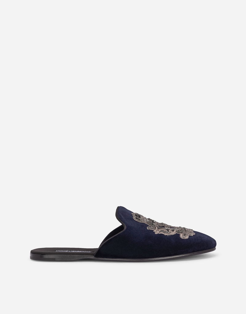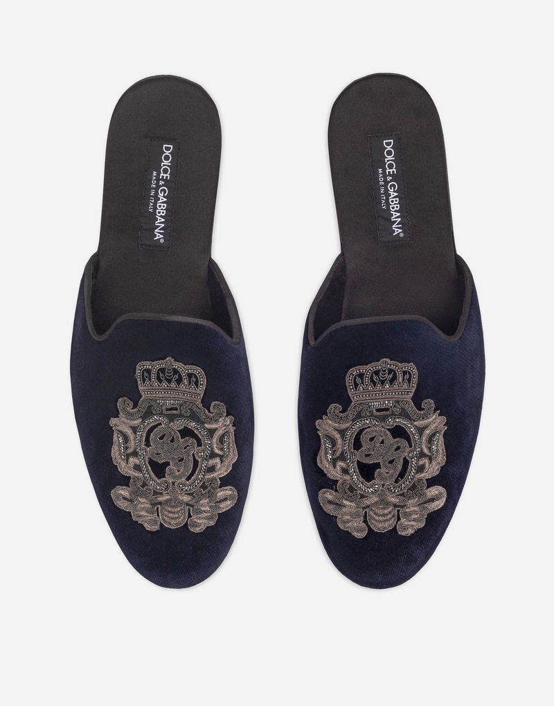 Velvet Slippers With Coat Of Arms Embroidery