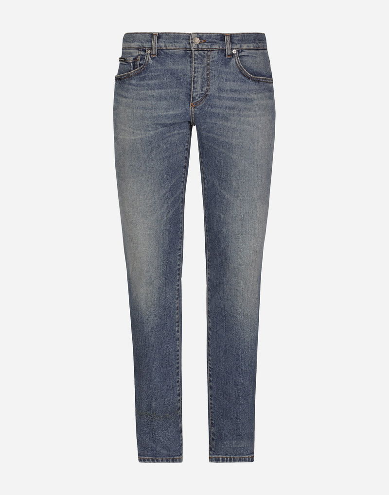 Washed Skinny Stretch Jeans With Whiskering
