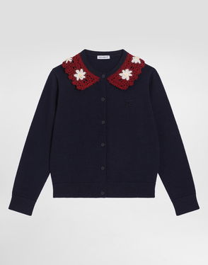 Fuel a lifelong love of Italian fashion with Dolce&Gabbana Kids' mini-me styles. Ribbed-knit from wool and cashmere, this polo sweater features a classic collar, front buttons, and a logo patch at the chest.