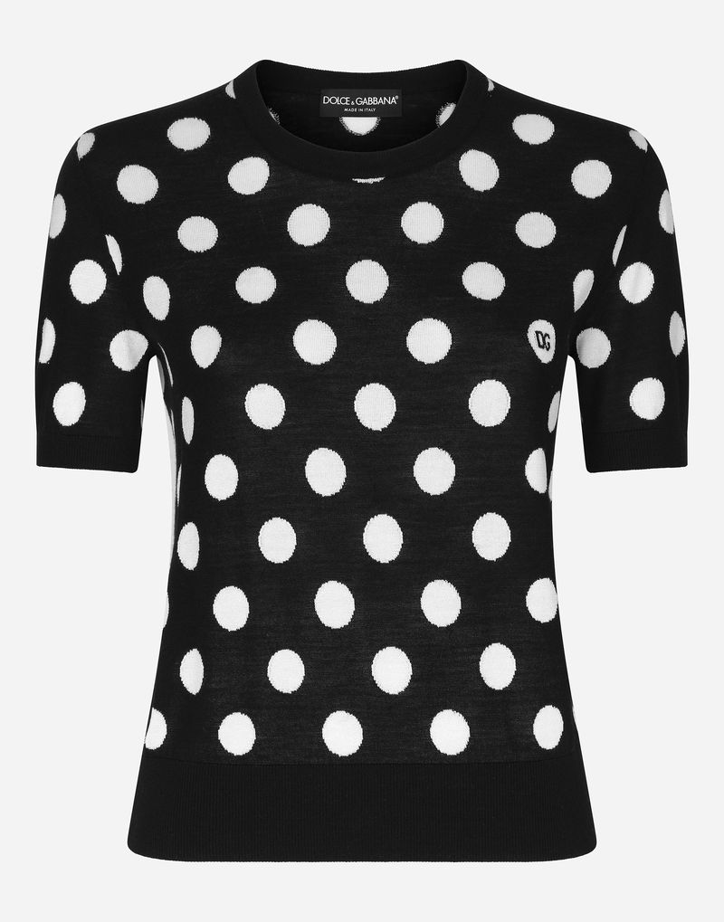 Wool And Silk Tank Top With Polka-dot Inlay