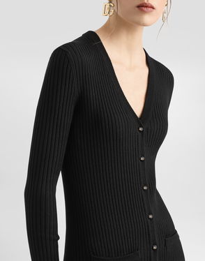 English rib wool blend cardigan: Taupe Oversized fit Long sleeves The model is 175 cm tall and wears size 40 IT Made in Italy