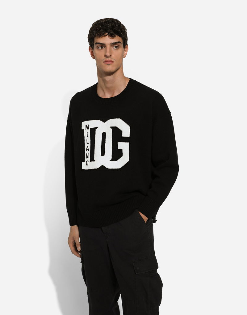 Wool Round-neck Sweater With DG Inlay