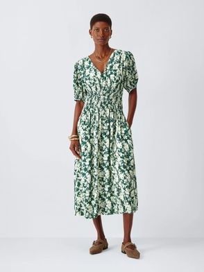 Domi’s green sleep tunic is adorned with a dainty floral motif, echoing founder Ali Blankley’s fascination with the natural world. It’s crafted from soft organic-cotton voile to a loosely draped silhouette that’s enhanced by front and back pleats and has a notched neckline and side hem slits.