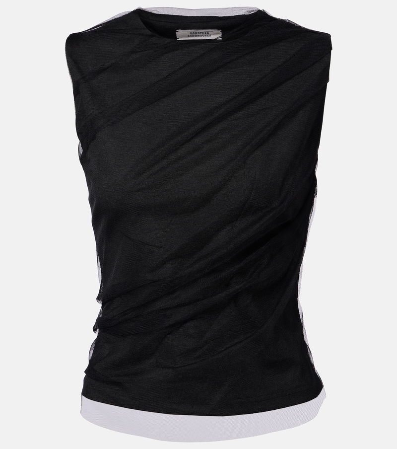 Dorothee Schumacher prefers to keep its designs refined and uncomplicated, allowing your natural confidence to shine through. Case in point, this sleeveless top is crafted from an airy tulle overlayer, which delicately drapes around the figure.