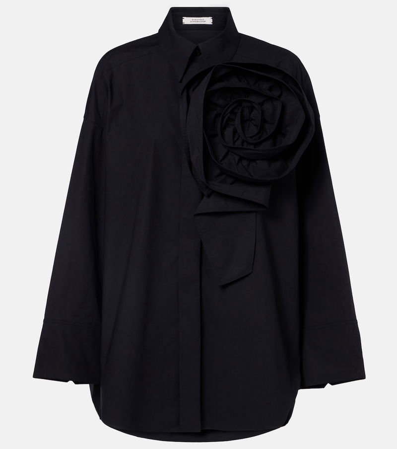 Floral-Appliqué Cotton-Blend Poplin Shirt