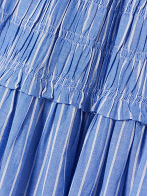 Marianne Shirred Striped Cotton-poplin Midi Dress