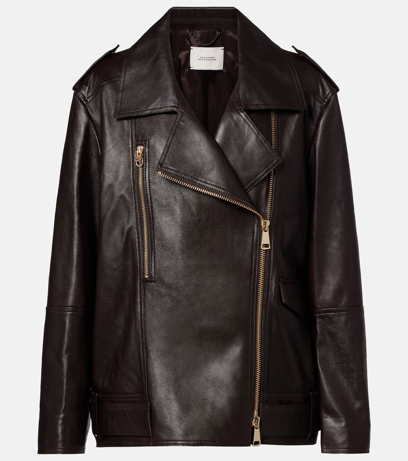Dorothee Schumacher prefers to keep its designs refined and uncomplicated, allowing your natural confidence to shine through. The Sleek Statement biker jacket is made from supple leather with zipped pockets and adjustable tabs at the waist.