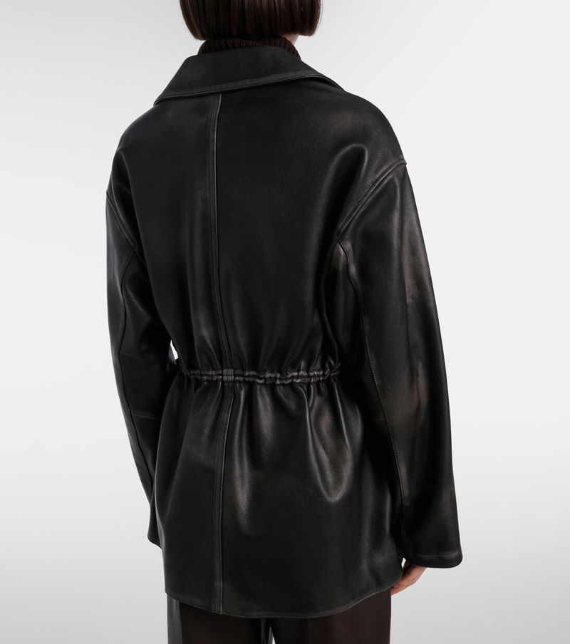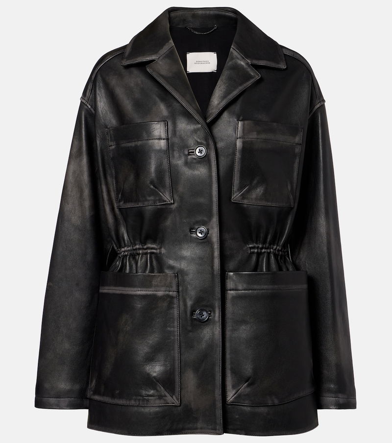 Dorothee Schumacher designs the perfect leather jacket with this oversized vintage style, aptly named Sleek Statement. Crafted from smooth lambskin leather, it features a notched lapel and a drawstring waist.