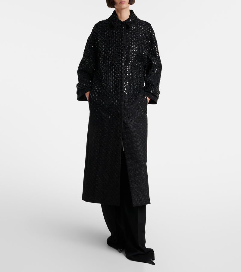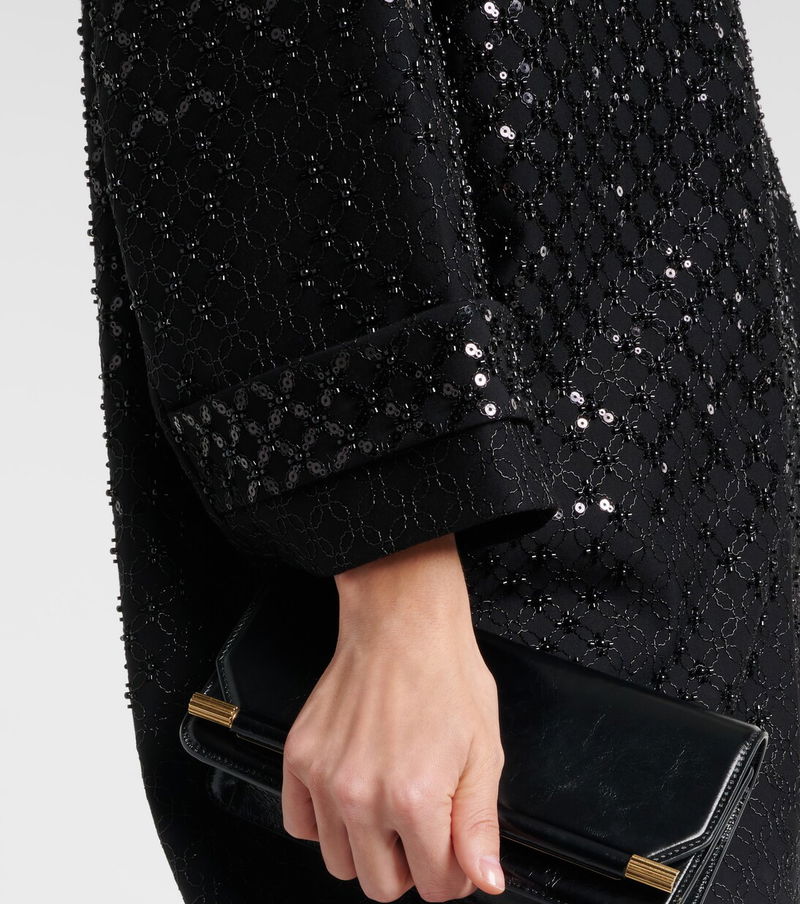 Sequin-Embellished Side-Pocket Stretch-Woven Jacket
