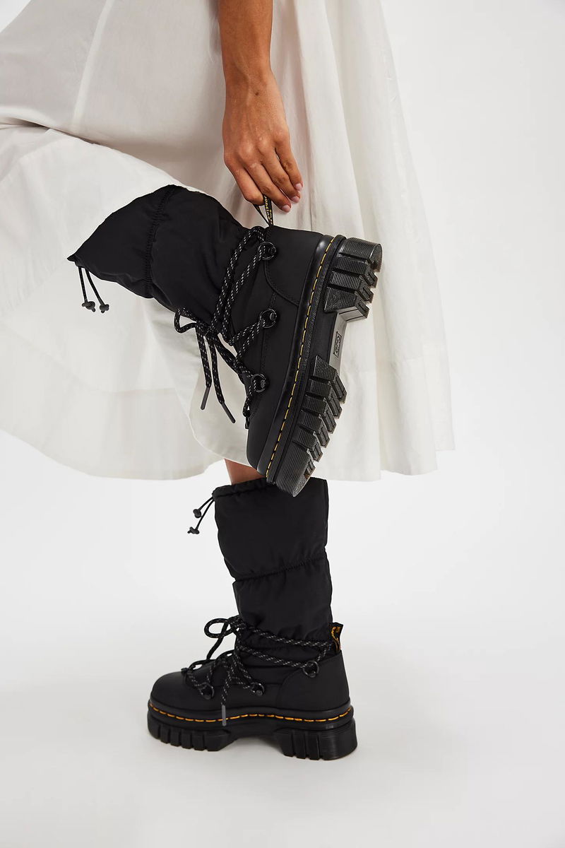 A staple edgy style gets a weather-ready makeover with these tall, padded platform snow boots from Dr. Martens.