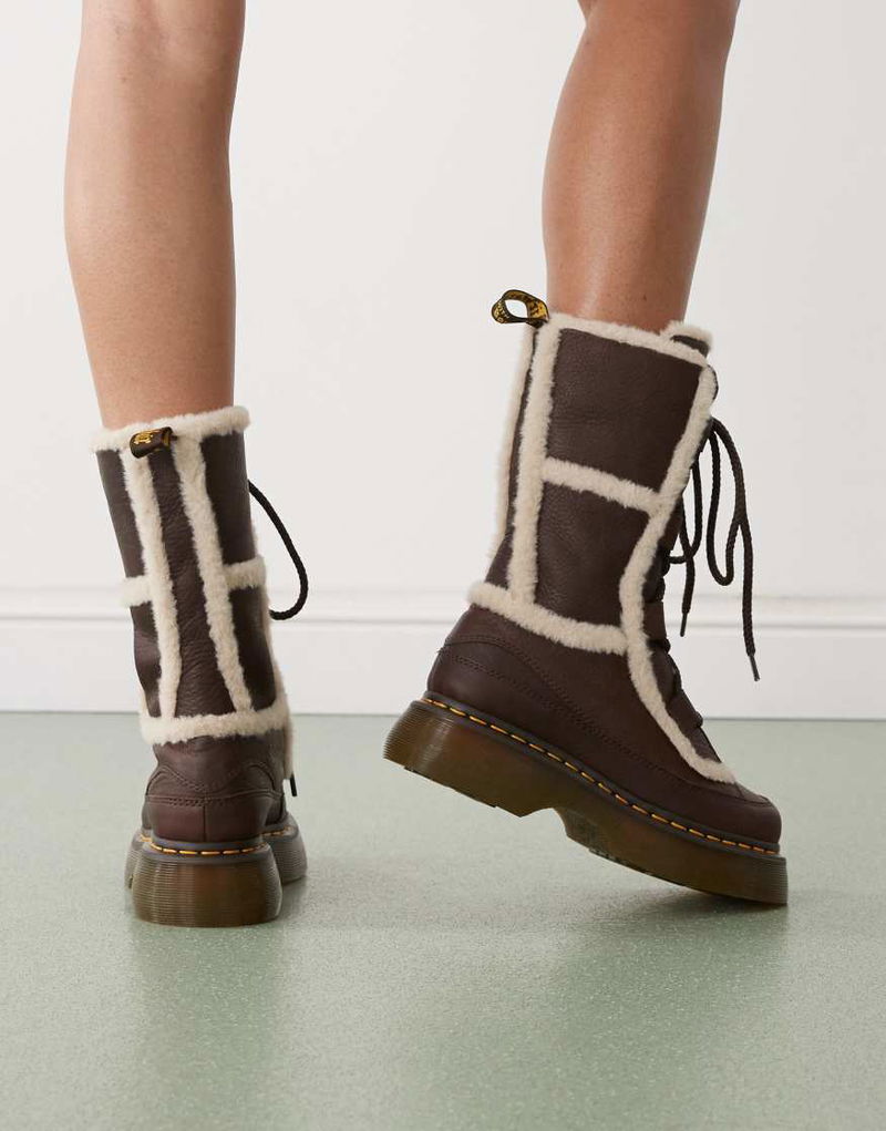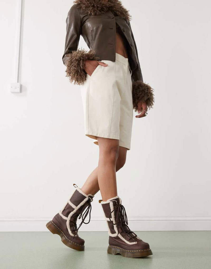 Buzz lace up faux fur leather boots. Pull tab for easy entr.