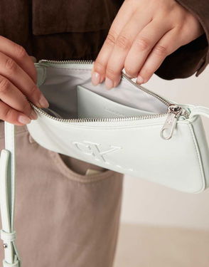 Main: 100% Polyester, Trim: 100% Leather, Lining: 100% Cotton.