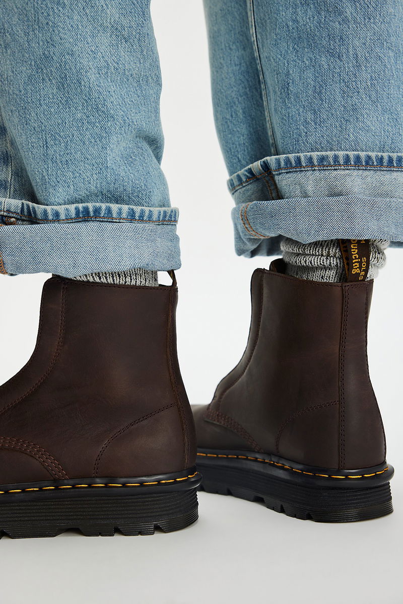 Laceless and built for everyday wear, year-round, these ankle boots from Dr. Martens feature slightly milled, snuffed leather uppers, ergonomic Zebzag soles, and a SoftWair footbed for extra cushioning, inspired by the classic 1460 boot, transformed into a slip-on style.
