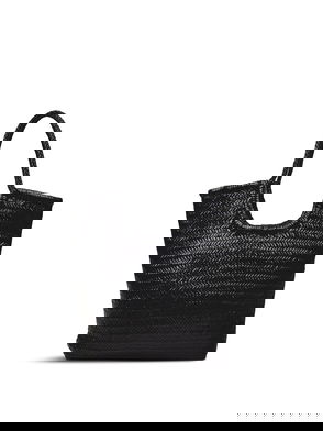 Rectangular shape, double top handles, all-over braided leather, one main compartment, internal brand patch and St. Christopher medal charm, handmade