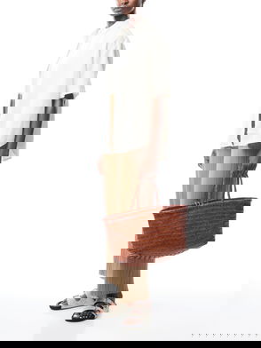 NS Diagonal Triple Jump Woven Leather Tote