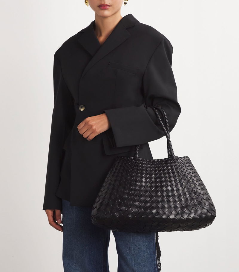 Dragon Diffusion prides itself on transferring time-honoured basket weaving techniques to the leather industry, creating unique handwoven pieces that are as distinguished as their heritage. The Santa Croce tote bag presents an elegant silhouette through the use of asymmetric leather straps that taper to the brim, with traditional basket bag elements maintained as it's unlined and has an open top.