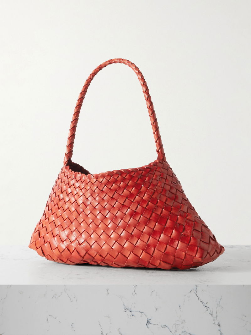 Dragon Diffusion's designs are handmade by a team of skilled craftspeople - the entire process can take up to four days to complete. Woven from strips of leather using traditional basket-weaving techniques, this 'Rosanna' tote has a slouchy, tapered shape and long shoulder strap that will sling comfortably over your arm. There's just enough room inside for your phone, cardholder and sunglasses.