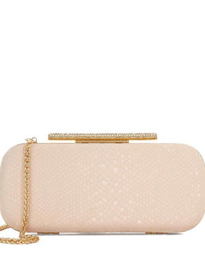Add a sparkly finish to your formal ensemble with the Evanderr clutch bag. Adorned with diamante embellishments and a Dune branded metal logo. This spacious style features one inside compartment and a shoulder strap. Finished in a gold metallic material.