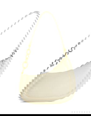 Asymmetric shape Chain shoulder strap Detachable, adjustable strap Zip-top fastening Internal zip pocket.
