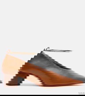 Adjustable strap. Pin-buckle fastening. Gold-tone hardware. Round toe. Mid block heel.