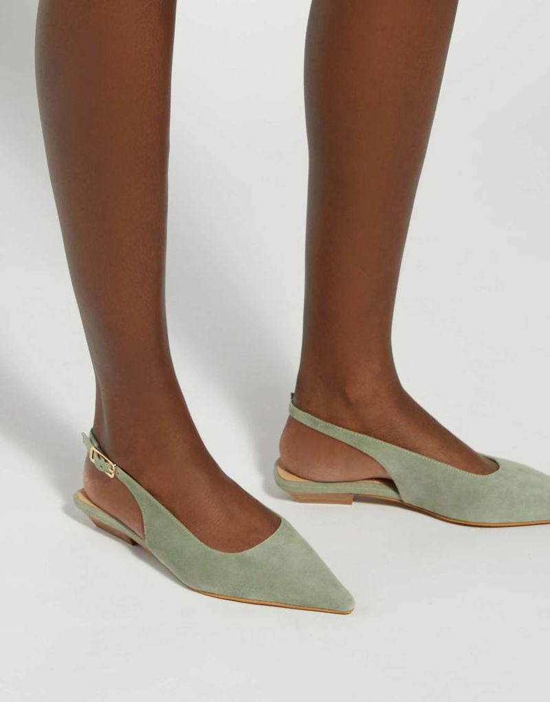 Hostess Ballet Pumps In Sage Suede