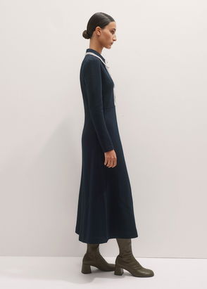 Eileen Fisher’s green dress is responsibly designed and made from crinkled silk habotai that feels almost weightless to wear. This sleeveless style falls through a loose mid-length silhouette that’s with rows of horizontal seams to create a tiered look.