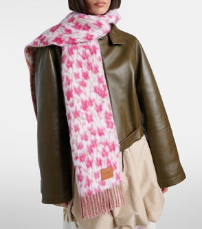 Eileen Fisher pink and white linen-blend gauze scarf. Dégradé, frayed trims.
