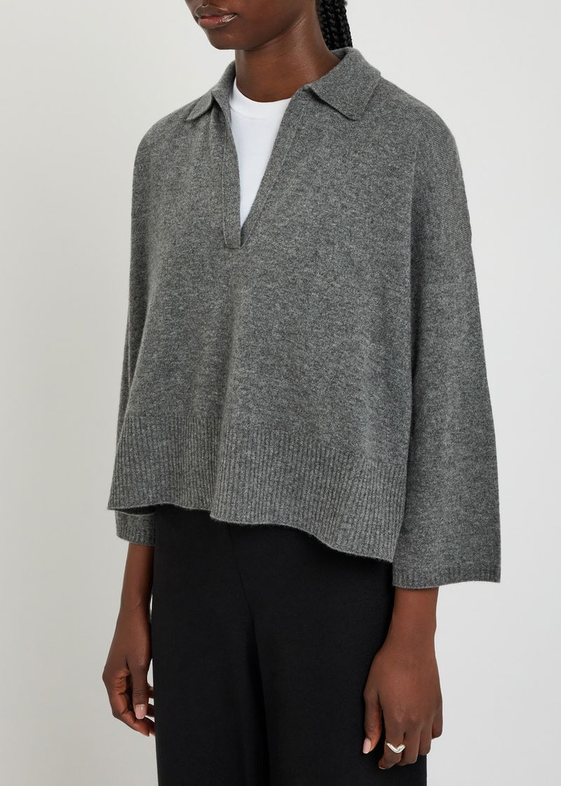 Melange Cashmere Polo Top