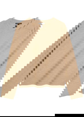 Eileen Fisher cotton-blend jumper. Ribbed, crew-neck, dropped shoulders.