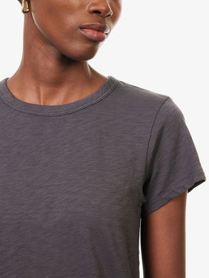 Eileen Fisher light blue slubbed cotton T-shirt. Round-neck, dropped shoulders. Slips on.